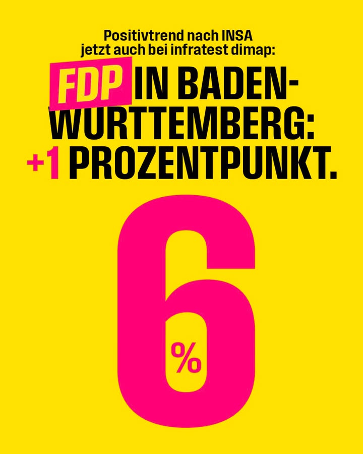 Drei Mal in Folge sechs Prozent für Hans-Ulrich Rülke und die FDP Baden-Württemberg eine Woche vor der Landtagswahl. 🔥🔥🔥 Jetzt noch einmal alles geben für den Politikwechsel am 8. März. 💪
